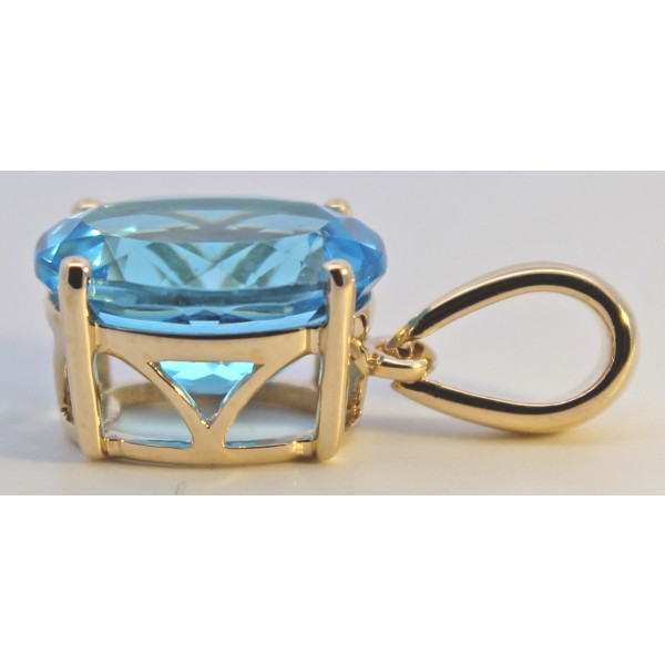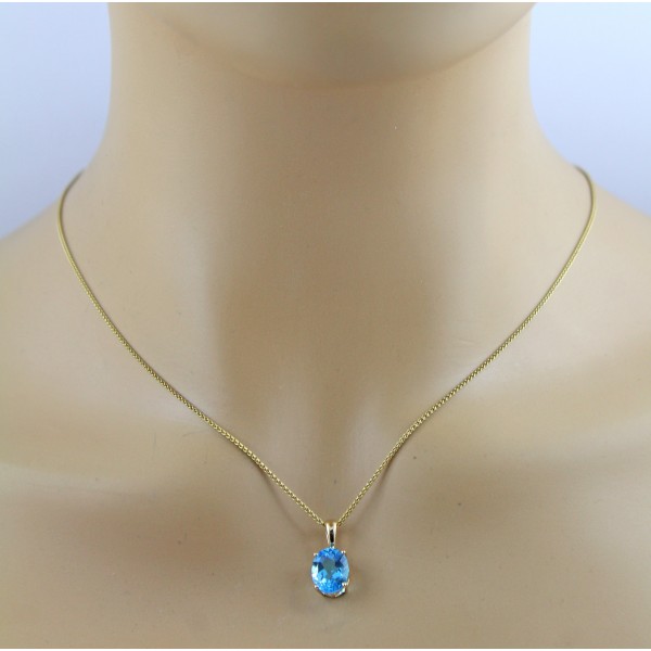 Ein Schmuckstück von zeitloser Eleganz und luxuriöser Raffinesse – dieser exklusive Anhänger wurde aus edlem Gelbgold 585 (14 Karat) gefertigt, einem der kostbarsten und langlebigsten Edelmetalle der Welt. Die warme Farbe des Gelbgoldes unterstreicht auf besonders stilvolle Weise die klare Brillanz des Edelsteins und verleiht dem Anhänger eine außergewöhnlich edle Ausstrahlung. Im Mittelpunkt steht ein erlesener Swiss Blautopas in einem facettierten Ovalschliff, der das Licht auf faszinierende Weise einfängt und in einem lebendig leuchtenden, strahlend himmelblauen Farbspiel reflektiert. Der Edelstein ist sorgfältig in einer klassischen Krappenfassung gehalten, welche den Stein sicher fixiert, gleichzeitig aber maximale Lichtzufuhr ermöglicht – für ein atemberaubendes Funkeln aus jedem Blickwinkel. Ein besonderes Detail stellt die bewegliche Öse dar: Sie ermöglicht nicht nur ein angenehmes Tragegefühl und geschmeidiges Einfädeln auf verschiedenen Kettenarten, sondern sorgt auch für ein elegantes, natürliches Spiel des Anhängers bei jeder Bewegung. Der Edelsteinanhänger besitzt eine Länge von 17,7mm, eine Breite von 8,1mm und einer Stärke von 6,4mm. Das Ößenmaß für eine Kette liegt bei 4x2mm bei einem Gewicht von ca. 1,6 Gramm.