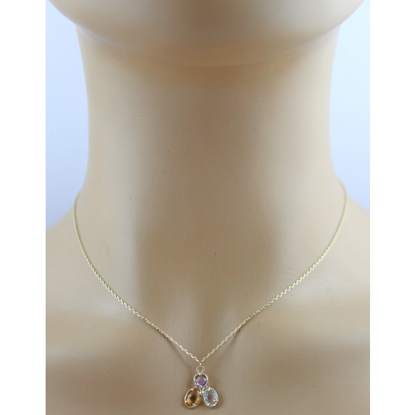 Elegante Ankerkette aus 333er Gelbgold, veredelt mit einem liebevoll gestalteten festen Anhänger, der drei edle Edelsteine harmonisch vereint. Der Anhänger kombiniert klassische Formen mit einem farbenfrohen Akzent, wodurch er sowohl stilvoll als auch auffällig wirkt. Ovaler, natürlicher Blautopas- in einer Krappenfassung, strahlend und klar, für ein funkelndes, kühles Farbspiel. Ovaler, natürlicher Citrin- ebenfalls in Krappen gefasst, vermittelt warme, sonnige Akzente und eine romantische Note. Lila Natur Amethyst- Edelstein, in Krappen gefasst, sorgt für einen edlen Farbkontrast und harmoniert perfekt mit den anderen Steinen. Der Anhänger ist fest mit der Kette verbunden, sodass die Edelsteine sicher sitzen und die Kombination aus Gold und Farbsteinen optimal zur Geltung kommt. Die Länge des Colliers beträgt: 42cm. Mit einer zusätzlichen Öse kann das Collier um 3 cm verlängert werden. Die Kette besitzt eine Breite/Stärke von 0,8mm. Die Breite des Anhängers liegt bei 11,4mm, einer Länge von 14mm und einer Stärke von 2,6mm. Das Gesamtgewicht des Colliers beträgt ca. 1,5 Gramm.