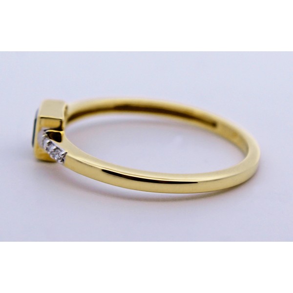 Dieser exklusive London Blue Topaz Ring aus 585 Gold (14 Karat) vereint farbliche Intensität mit eleganter Handwerkskunst. Im Zentrum des Rings befindet sich ein London Blue Topaz, geschliffen im Princess Cut, der für seine klare, geometrische Form und funkelnde Brillanz bekannt ist. Die intensive, tiefblaue Farbe des Topaz wirkt geheimnisvoll und edel, während der präzise Zargenschnitt den Edelstein sicher hält und gleichzeitig seine Leuchtkraft voll zur Geltung bringt. Begleitet wird der Hauptstein von 6 funkelnden, natürlichen Diamanten mit insgesamt ca. 0,06ct, Farbe F/ Reinheit SI2, die in Weißgold-Krappen gefasst sind. Die funkelnden Diamanten bilden einen eleganten Kontrast zum tiefblauen Topaz und verleihen dem Ring eine luxuriöse, harmonische Ausstrahlung. Der Diamant Klassiker ist in schöner Goldschmiede Handarbeit geschmiedet worden mit einer Ringkopfbreite von 5,1mm, einer Höhe von 2,9mm, einer Ringschienenstärke von 1,4mm und einem Gesamtgewicht von ca. 2 Gramm. Das Goldschmiede Schmuckstück ist bei uns in folgenden Ringgrößen ab Lager verfügbar: 17-20mm.