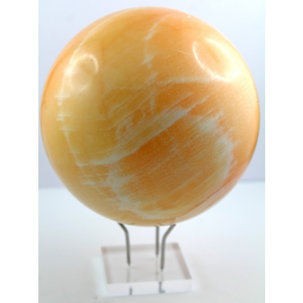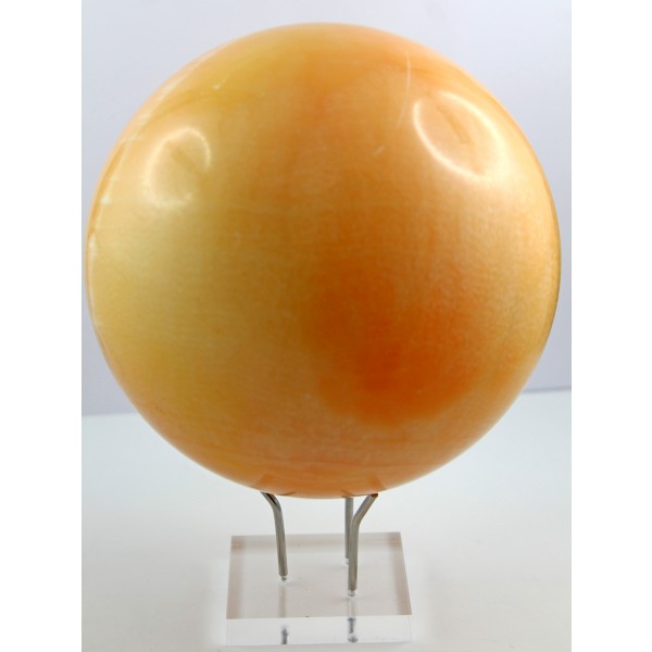 Diese außergewöhnliche handgeschnitzte Kugel stammt aus einem sorgfältig ausgewählten Rohstein und überzeugt durch ihre Top AAA Qualität. Die Kugel besteht aus Calcit, einem Mineral, das für seine sanften, ausgleichenden Energien bekannt ist. Sie präsentiert sich in pastell-orangen bis pfirsichfarbenen Tönen, die in sanften, wolkenartigen Mustern verlaufen. Die hellen, fast durchscheinenden Bereiche erinnern an nebelhafte Wolken, die sich leicht über die warme Grundfarbe legen. Das Zusammenspiel von weichen Orange- und Pfirsichnuancen erzeugt ein beruhigendes, harmonisches Erscheinungsbild, das sowohl visuell als auch energetisch sanft wirkt. Calcit ist bekannt dafür, positive Schwingungen zu verstärken, innere Ruhe zu fördern und Stress abzubauen. Die wolkenartigen Muster können die meditative Visualisierung unterstützen, Klarheit in Gedanken und Entscheidungen fördern. Orangefarbenes Calcit wird oft mit Lebensfreude, Optimismus und Motivation assoziiert. Die Kombination aus pastelligem Orange, Pfirsichfarbenen Nuancen und wolkenartigen Mustern macht diese Calcit-Kugel nicht nur zu einem ästhetischen Dekorationsstück, sondern auch zu einem kraftvollen Werkzeug für spirituelles Wachstum, innere Heilung und emotionale Balance. Die Edelsteinkugel bringt ein stolzes Gewicht von ca. 5000 Gramm auf die Waage, bei einem Kugel-Durchmesser von 135mm. Die wunderschöne Kugel wird mit einem edlen und sicheren Plexiglasständer geliefert, welcher die Schönheit des Edelsteines perfekt zur Geltung bring.