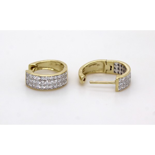 Diese luxeriösen Creolen aus 585er Gelbgold (14 Karat) begeistern durch ihre eindrucksvolle, strahlende Gestaltung, welche reichhaltig mit 66 strahlenden Labor Brillanten von ca. 0,75ct. besetzt ...