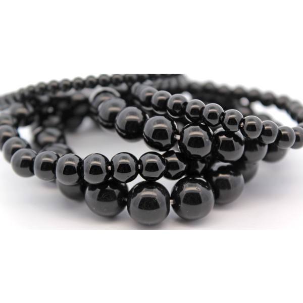 Dieses auffallende Armband Set aus natürlichen Obsidian Edelsteinen vereint natürliche Schönheit mit schützender Energie. Die glatt polierten Kugeln zeigen einen tiefschwarzen, spiegelden Glanz, der das Licht auf wundersamen Weise spiegelt. Die Armbänder sind auf einem elastischen Gummiband aufgezogen und schmiegen sich angenehm an das Handgelenk an. In der spirituellen Bedeutung steht er für Selbsterkenntnis, Schutz und Heilung, da er unerwünschte Einflüsse reflektiert und dabei hilft, alte Muster zu durchbrechen. Der Osidian stärkt das Bewusstsein, schützt die Aura und verleiht seinen Trägern Ruhe, Stärke und Stabilität. Der Durchmesser der Steine liegt bei 12,2, 10,1, 8,2, 6,3 und 4,6mm, bei einer Länge von 18-20cm und einem Totalgewicht von ca. 90,13 Gramm.