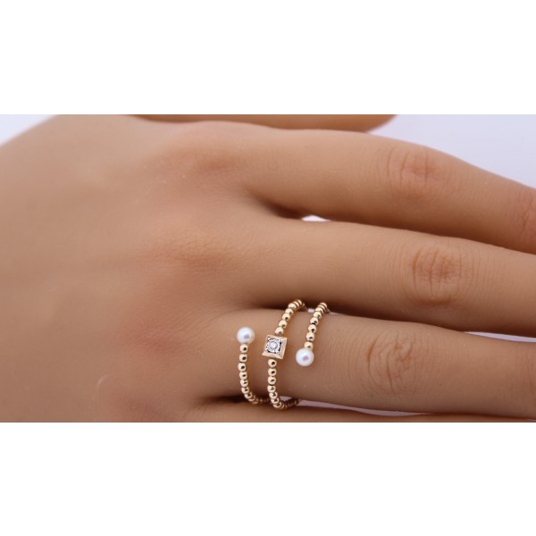 Ein Schmuckstück, das Blicke fesselt und bleibenden Eindruck hinterlässt. Dieser flexible Damenring aus Gelbgold 585 (14 Karat Gold) gefertigt, vereint klassische Eleganz mit modernem Design. Die geteilte Ringschiene verläuft dynamisch und offen, an beiden Ende sitzt eine edle Süßwasser Zuchtperle von 3-3,5mm. Beide Enden sind wirkungsvoll inszenierte und schaffen einen reizvollen Gegensatz zwischen dem sanften Schimmer der Perle und dem präzisen Funkeln des Natur Diamanten. In der Mitte wurde ein Natur Diamant von ca. 0,015ct im Brillantschliff eingearbeitet, der dem Ring eine feine Brillanz verleiht. Die Süßwasser Perlen zeichnet sich durch ihr zartes Weißes Lüster und ihre harmonisch runden Form aus, ein klassisches Symbol für Reinheit und Weiblichkeit. Dieser Ring besticht durch sein offenes, fließendes Design und die ästhetische Spannung zwischen Perlen und einem Diamanten. Die Ringkopfbreite liegt bei 15,5mm, bei einer Stärke von 2-2,7mm und einem Gesamtgewicht von ca. 1,1 Gramm. Zu diesem Damenring finden sie bei uns im Onlineshop das passende Armband mit der Artikelnummer 090151500.