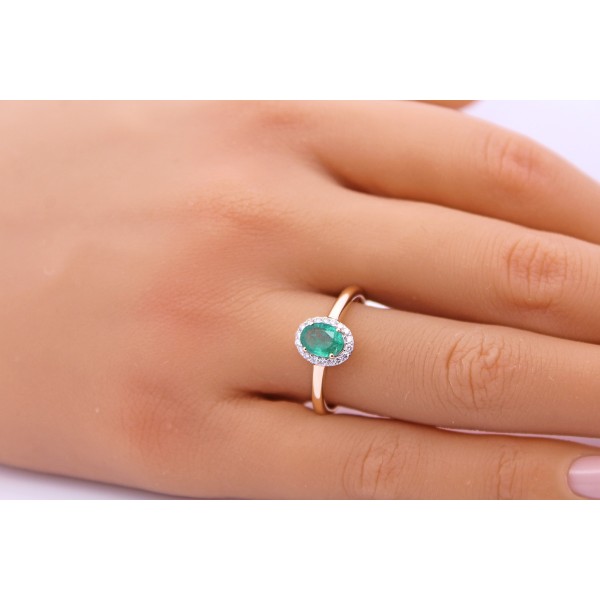 Dieser exclusive Damenring in Gelbgold 375 (Gold 9 Karat), vereint klassische Goldschmiedekunst mit dem Anspruch an Ethik und Nachhaltigkeit. Im Mittelpunkt steht ein natürlicher Smaragd aus Sambia von ca. 0,74ct. im Ovalschliff, der durch seine leuchtende, tiefgrüne Farbe fasziniert. Flankiert wird dieser von 18 Lab Grown Diamanten im Brillantschliff mit einem Totalgewicht von ca. 0,15ct. mit einer Qualität von G/VSI (hochfeines weiß/sehr kleine natürliche Einschlüße). Die Diamanten rundherum in Weißgold Krappen gefasst, diese Anordnung verstärkt die Strahlkraft des zentralen Steins und sorgt für ein glamouröses Funkeln. Die Kombination aus dem wunderschönen Smaragd und den funkelnden Diamanten schafft eine perfekte Balance zwischen Farbintensität und Strahlkraft. In präziser Handarbeit wurde der Damenschmuck mit einer Breite von 9,5mm, einer Höhe von 4,9mm, einer Stärke von 1,3mm gefertigt und einem Gewicht von ca. 2,3 Gramm. Der Goldring ist bei uns in den Größen 17-20mm ab Lager verfügbar.