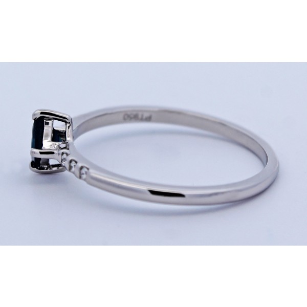 Dieser edle Ring aus Platin 950 vereint zeitlose Eleganz mit moderner Klarheit. Im Zentrum des Designs befindet sich ein echter Saphir mit ca. 0,37ct, geschliffen im eleganten Princess Cut. Der quadratische Facettenschliff verleiht dem Edelstein eine klare, moderne Linienführung und bringt seine tiefblaue Farbintensität besonders brillant zur Geltung. Der Saphir ist in einer klassischen Krappenfassung gefasst, die sicheren Halt bietet und gleichzeitig eine maximale Lichtzufuhr ermöglicht. Ergänzt wird der Hauptstein durch 6 natürliche Diamanten mit einem Gesamtgewicht von ca. 0,05ct im Brillantschliff Qualität F/SI2. Die Diamanten sind kanalgefasst, was dem Ring eine elegante, ruhige Optik verleiht und die funkelnde Brillanz harmonisch in das Design integriert Die Kombination aus dem eleganten Saphir und den funkelnden Diamanten schafft eine perfekte Balance zwischen Farbintensität und Strahlkraft. In präziser Handarbeit wurde der Damenschmuck mit einer Breite von 6,4mm, einer Höhe von 3,8mm, einer Stärke von 1,3mm gefertigt und einem Gewicht von ca. 3gr. Das hochwertige Platin 950 unterstreicht die Exklusivität des Rings, bietet außergewöhnliche Beständigkeit und sorgt für höchsten Tragekomfort. Der Saphir gilt als Stein der Weisheit, Wahrheit und geistigen Klarheit. Er wird seit Jahrhunderten mit innerer Ruhe, Erkenntnis und spiritueller Tiefe in Verbindung gebracht.