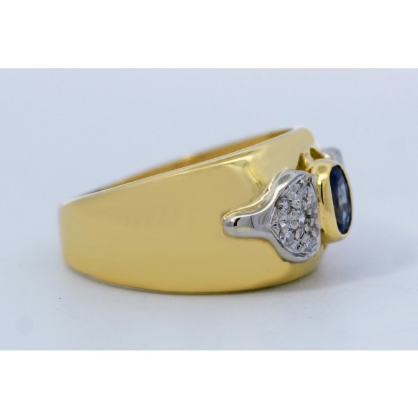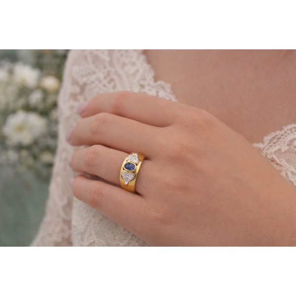 - Saphirring Gelbgold 18k 750 blauer Saphir 0.30ct Diamanten 0.10ct