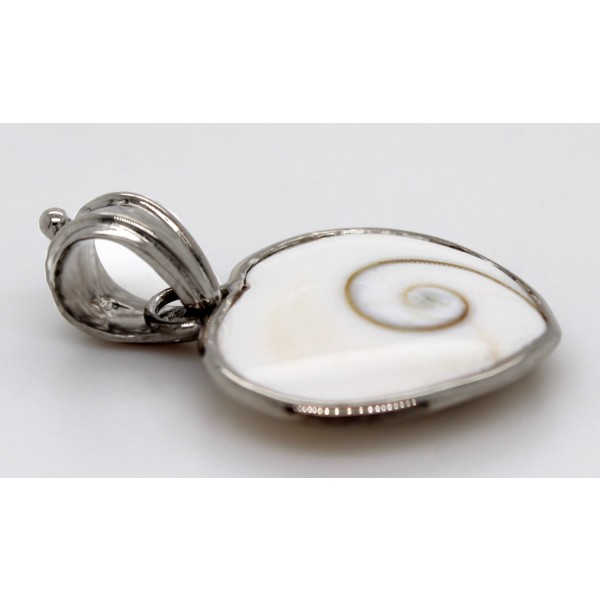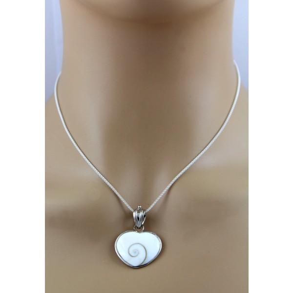 Der symbolträchtiger und wunderschöner Anhänger "SHIVAS AUGE" mit einer echten Nautilusschnecke in Herzform ist ein wahrer Schatz aus der Natur und wurde vom Goldschmied, in eine Silber 925 Zargenfassung edel gefasst und mit einer Anhängeröse, ebenfalls aus Silber 925 ausgestattet und im hochglanzpoliertem Finish veredelt. Die wunderschöne, kräftige, cremeweiße Scheibe mit dem typischen Spiralmuster der Kreisel oder auch Turbanschnecke misst ca. 14,00ct. und wird im Handel fälschlicherweise als Nautilus-Schnecke oder Shivamuschel bezeichnet. Tatsächlich handelt es sich aber um den Schneckenhaus- Deckel, mit dem die Turbanschnecke ihr Gehäuse bei Gefahr verschließen kann, das so genannte Operculum. Dieses wird auch Shiva Eye genant und repräsentiert Wissen und Weisheit. Im Mittelmeerraum ist hierfür auch der Begriff Auge von Lucia oder Meeresauge bekannt.