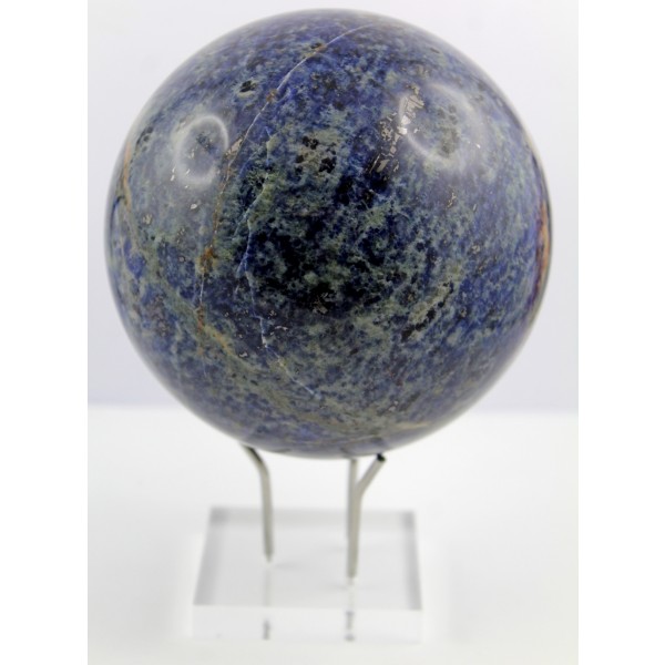 Diese außergewöhnliche handgeschnitzte Kugel stammt aus einem sorgfältig ausgewählten Rohstein und überzeugt durch ihre Top AAA Qualität. Die Kugel besteht hauptsächlich aus Sodalith, einem tiefblauen, teils violettlich schimmernden Edelstein, der für seine klaren, intensiven Farbtöne geschätzt wird. In dieser Ausführung zeigt die Kugel zusätzlich feine beige-braune Maserungen, die wie zarte Adern oder Wolken über die Oberfläche verlaufen, wodurch ein harmonisches Farbspiel entsteht. In das Sodalith-Material ist Bergkristall (klarer Quarz) eingebettet, entweder als kleine Einschlüsse oder als klar erkennbare Partien, die das Licht reflektieren und für eine zusätzliche Tiefenwirkung sorgen. Diese Kombination von dunklem Blau, hellem Beige und Braun erzeugt eine natürliche, erdverbundene Ästhetik, die sowohl beruhigend als auch elegant wirkt. Sodalith wird oft als Stein der Logik, Intuition und inneren Wahrheit bezeichnet. Er hilft, Gedanken zu ordnen, mentale Blockaden zu lösen und die eigene innere Stimme wahrzunehmen. Seine beruhigende Wirkung unterstützt emotionale Stabilität und hilft, impulsive Reaktionen zu vermeiden. Bergkristall gilt als „Meister-Heiler“ und verstärkt die Wirkung anderer Steine. In Kombination mit Sodalith wird die mentale Klarheit und die intuitive Wahrnehmung verstärkt. Bergkristall klärt negative Energien, unterstützt Meditationen und fördert einen harmonischen Energiefluss. Zusammen symbolisiert die Farbkomposition die Balance zwischen Himmel und Erde, zwischen Intuition und Realität. Die Edelsteinkugel bringt ein stolzes Gewicht von ca. 2146,6 Gramm auf die Waage, bei einem Kugel-Durchmesser von 107mm. Die wunderschöne Kugel wird mit einem edlen und sicheren Plexiglasständer geliefert, welcher die Schönheit des Edelsteines perfekt zur Geltung bring.