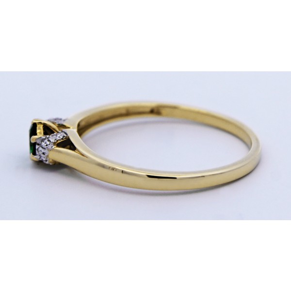 Dieser exklusive Tsavorit-Ring aus 585 Gold (14K) verbindet intensive Farbbrillanz mit klassischer Schmuckkunst. Im Zentrum des Rings befindet sich ein Tsavorit mit ca. 0,35ct, rund facettiert geschli ...